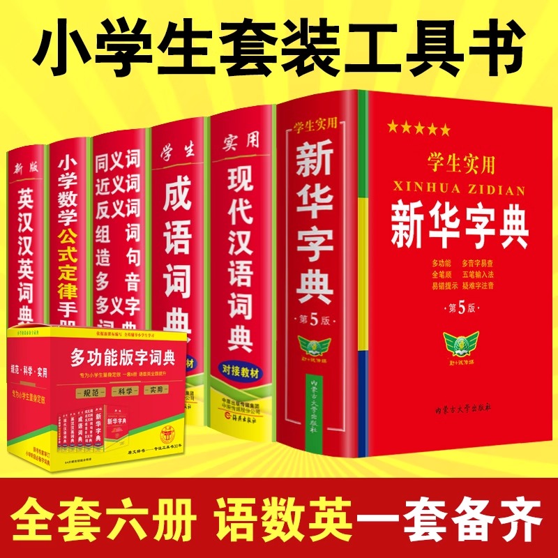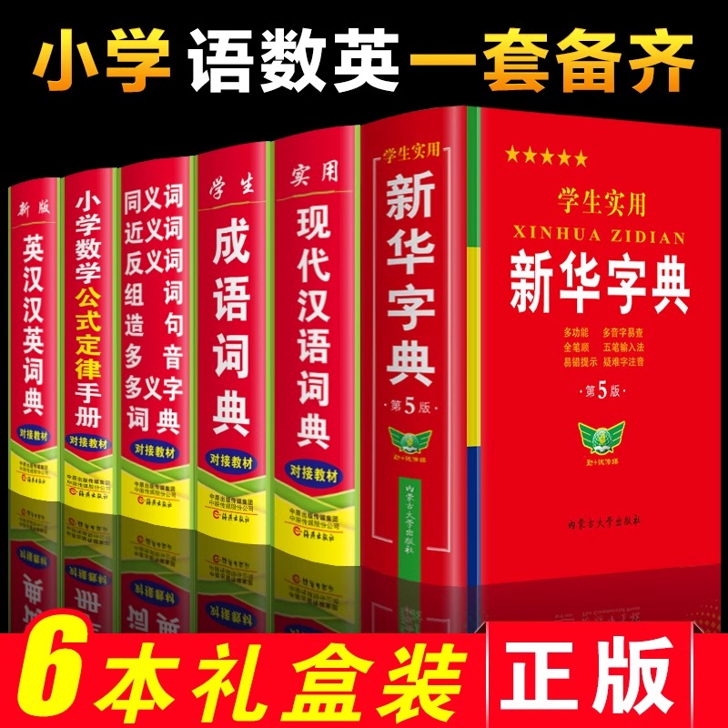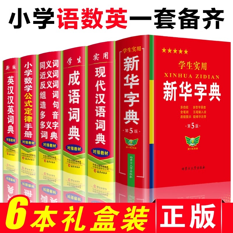 儿童语文全笔顺规范四字词语解释大全 人教版 正版 2024年小学生专用新华字典现代汉语成语英语同义近义反义组词造句词典全套6本套装