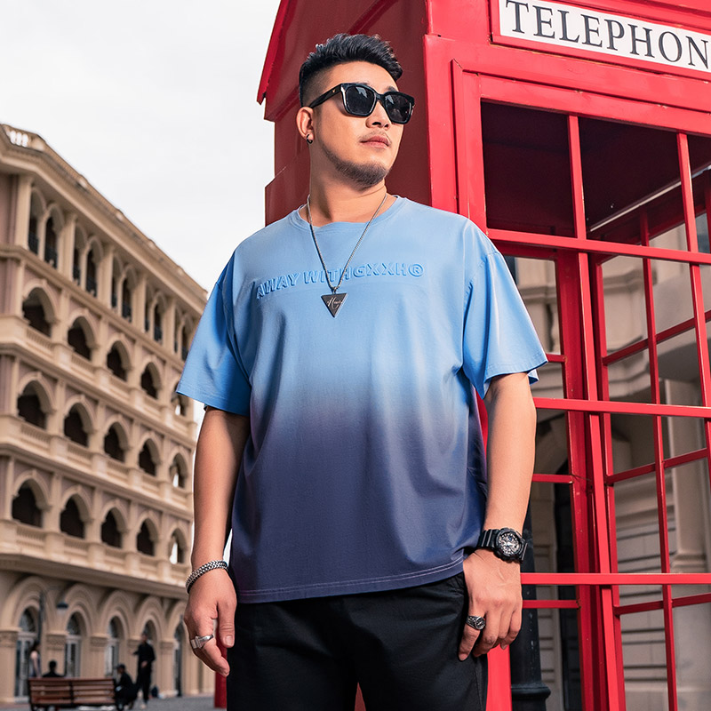宽松渐变吊染字母压花加肥加大短袖 潮牌半袖 T恤220斤 男装 GxxH大码