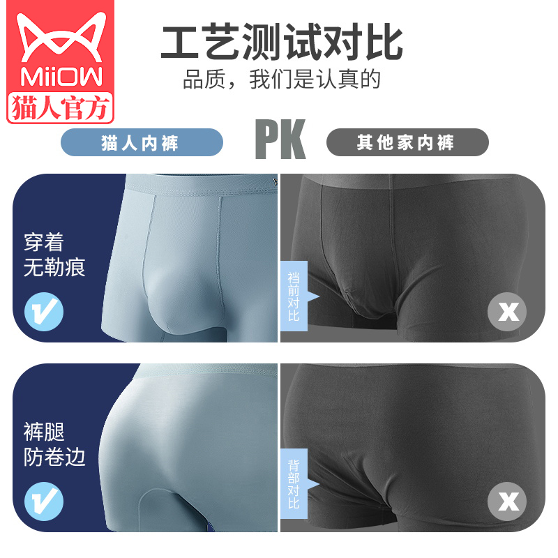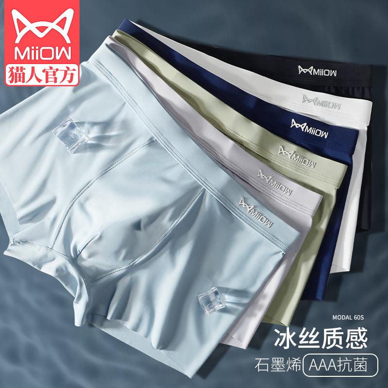 内裤 男生四角平角短裤 男款 青少年夏季 衩 冰丝无痕2025新款 猫人男士