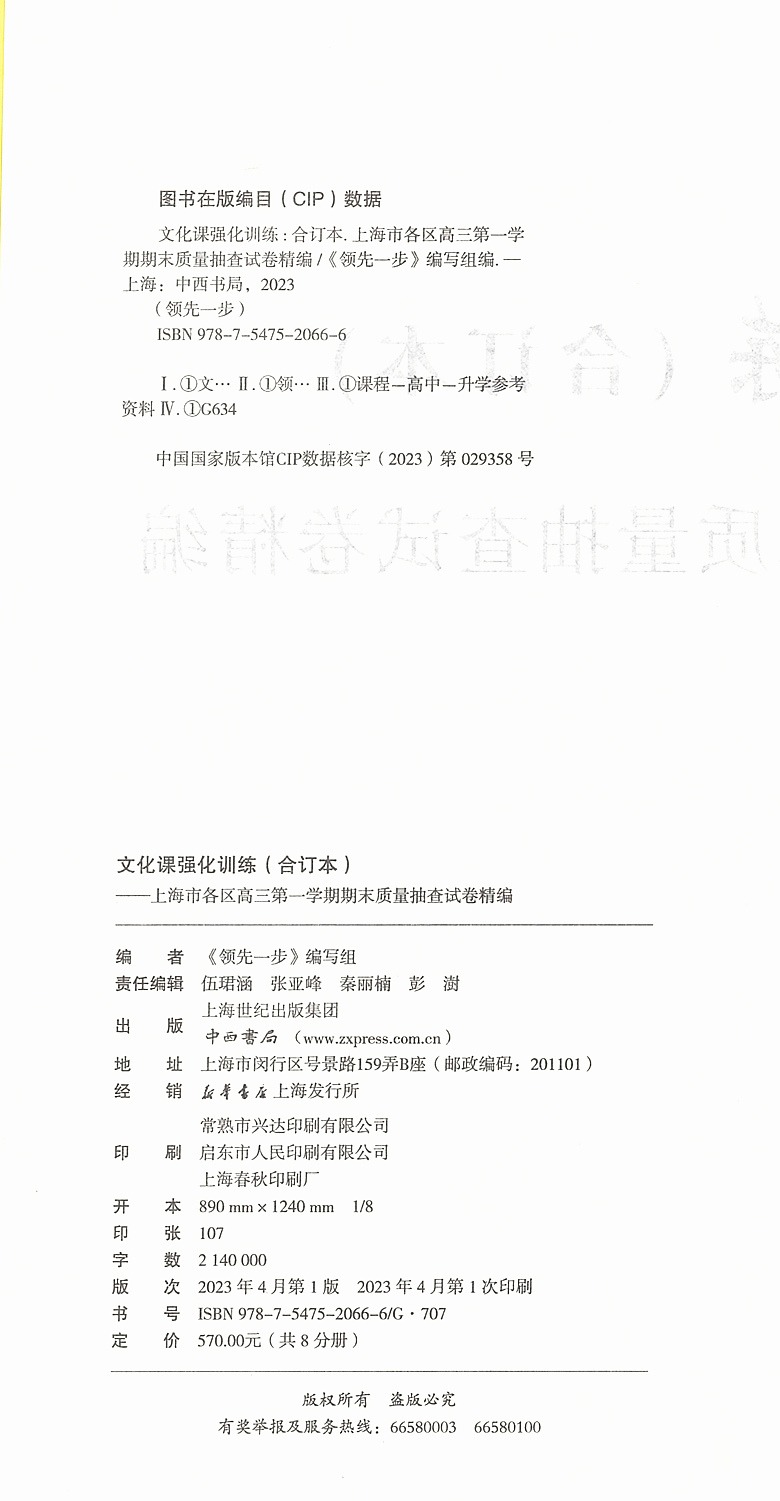 精编合订本高中期末冲刺复习提高测试卷 仅试卷 2021—2023年版 上海高考政治一模卷领先一步文化课强化训练2022年上海市高三高中