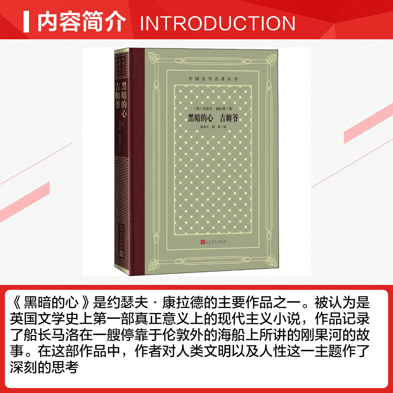 英 约瑟夫·康拉德中小学寒暑假课外书阅读书目外国世界文学名著经典 小说读物布面精装 黑暗 人民文学出版 吉姆爷 正版 社 心