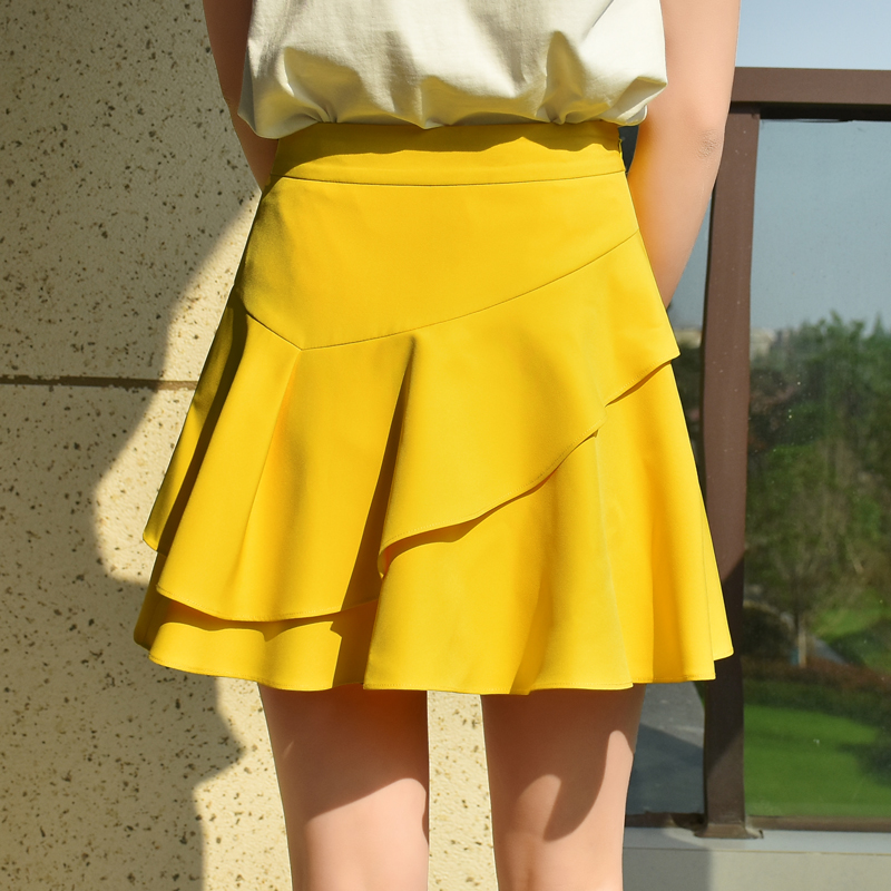 白色百褶裙带口袋夏小个子松紧高腰弹力短裙女胖mm大码 显瘦半身裙