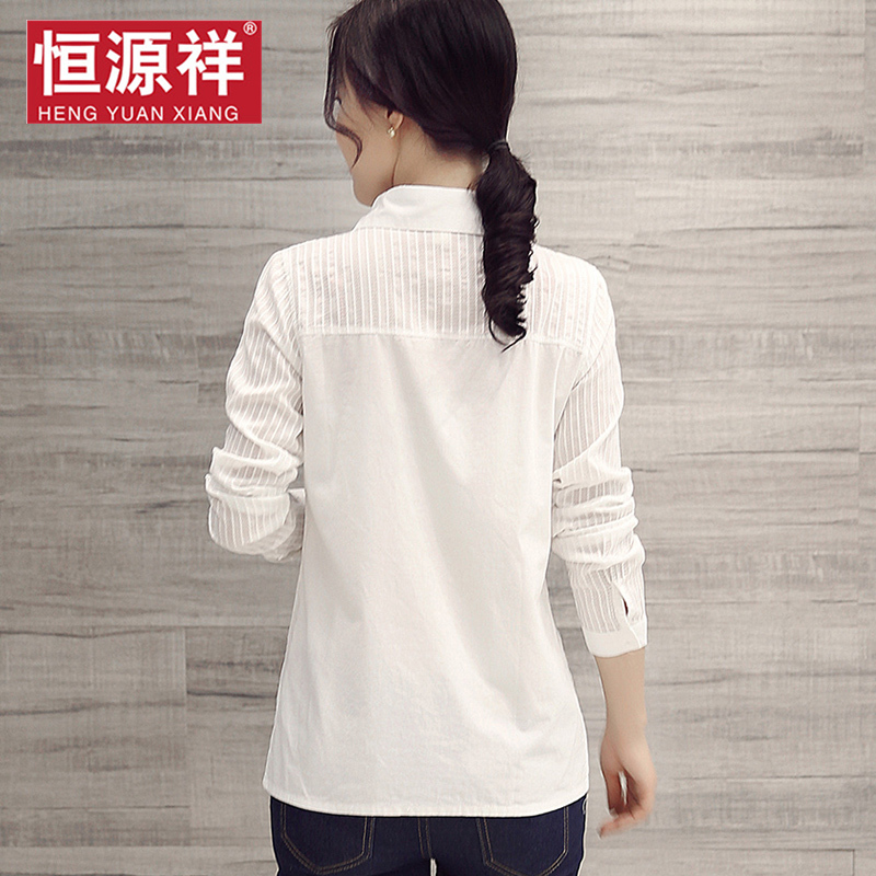 百搭加绒上衣 衬衣长袖 恒源祥白色衬衫 女春夏设计感纯棉气质短袖