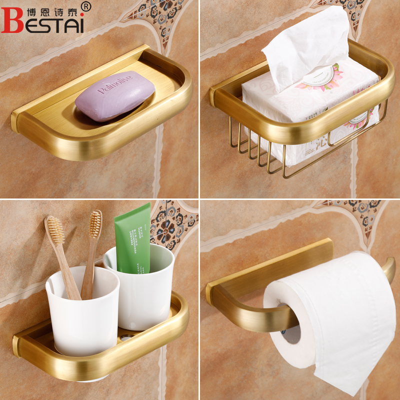 仿古全铜毛巾架子欧式 免打孔 浴巾架卫生间浴室置物架五金挂件套装