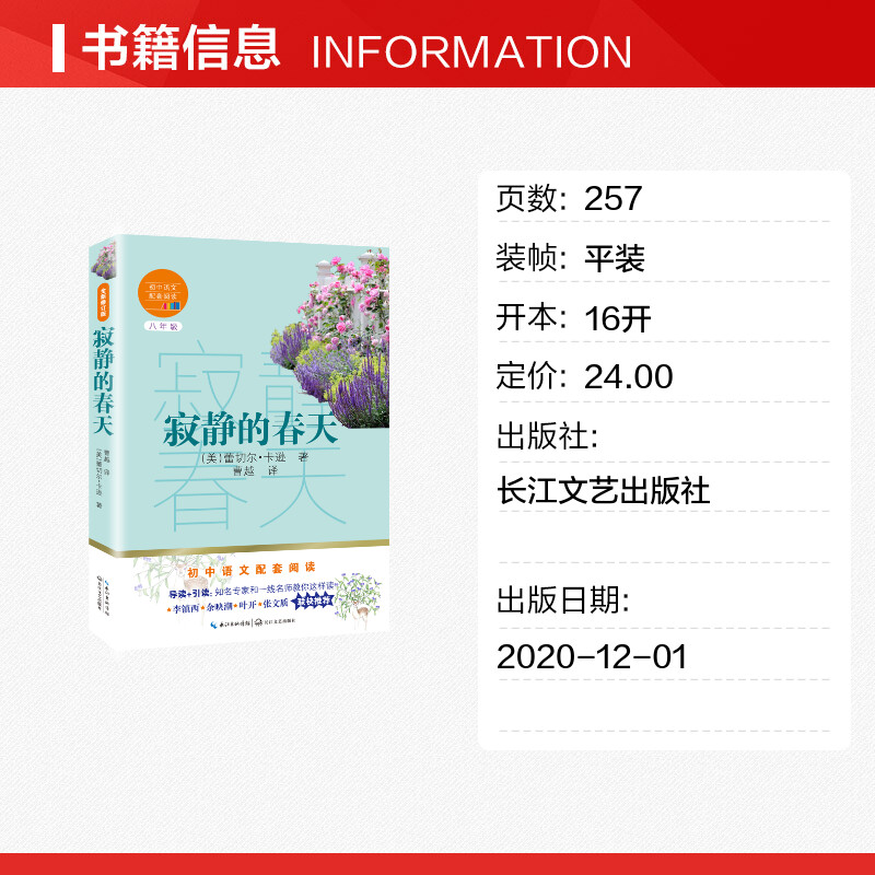 初中语文配套阅读 社 长江文艺出版 译 春天 8年级 中学教辅文教 蕾切尔·卡逊 美 图书籍 寂静 著 新华书店正版 曹越