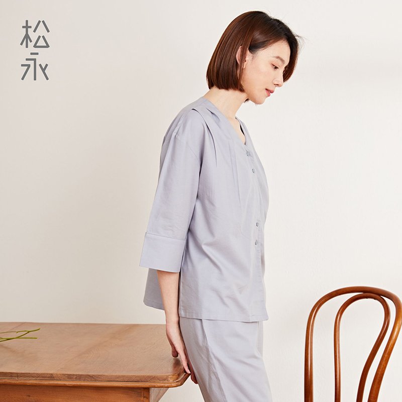 雅致干爽显瘦睡衣套装 素色宽松九分裤 家居服套装 松永春夏女士中袖