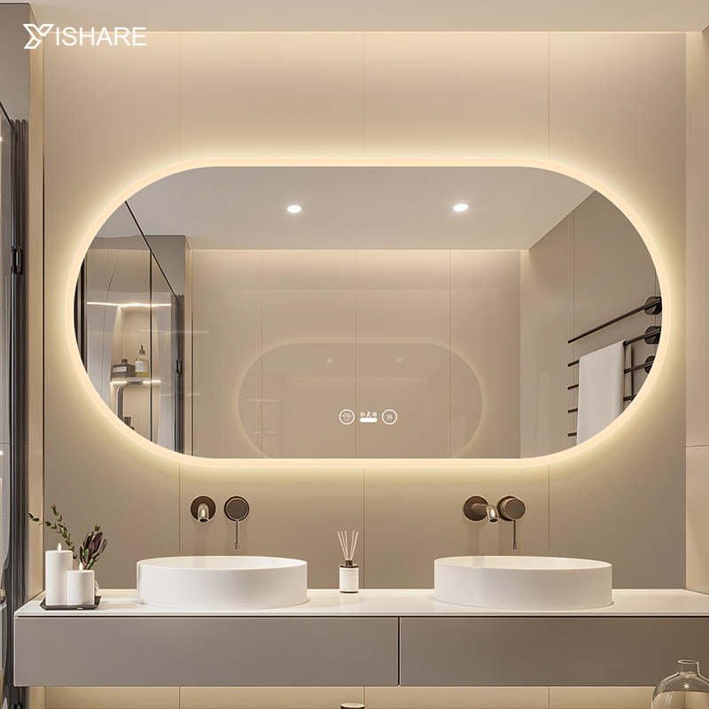 椭圆形浴室镜壁挂led带灯发光洗漱台镜子挂墙式 化妆防雾卫生间镜