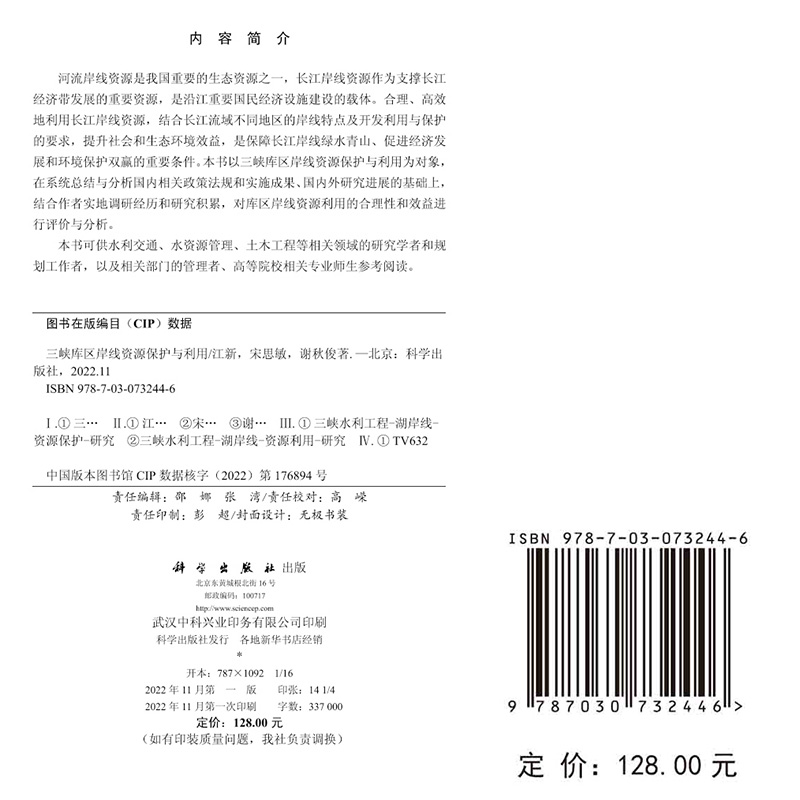 江新 宋思敏 谢秋俊 正版 社 三峡库区岸线资源保护与利用 科学出版 9787030732446 现货