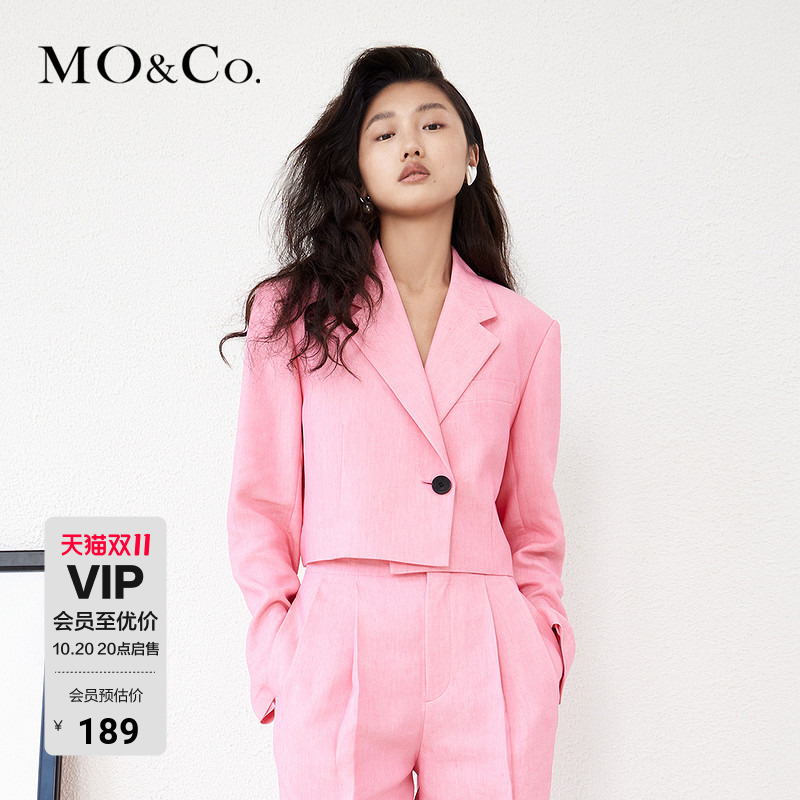 MOCO春亚麻混纺简约宽肩西装 外套权力外套截短西装