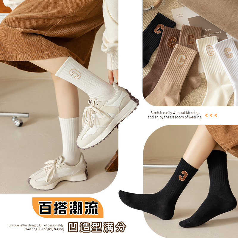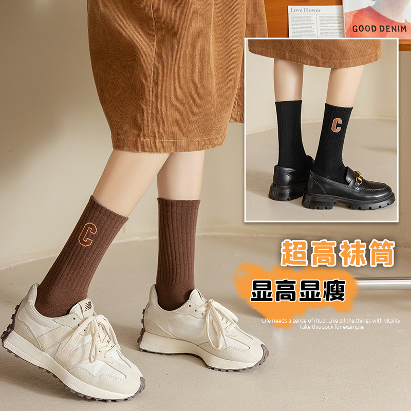 白色袜子女夏季 ins潮外穿日系袜长筒袜夏天棉袜长袜 中筒袜网红款