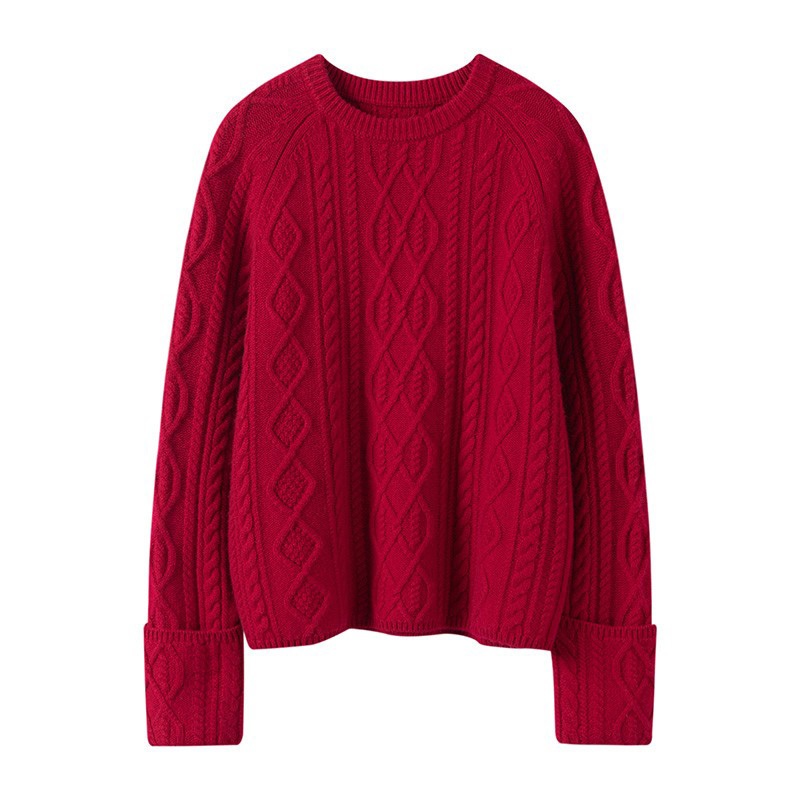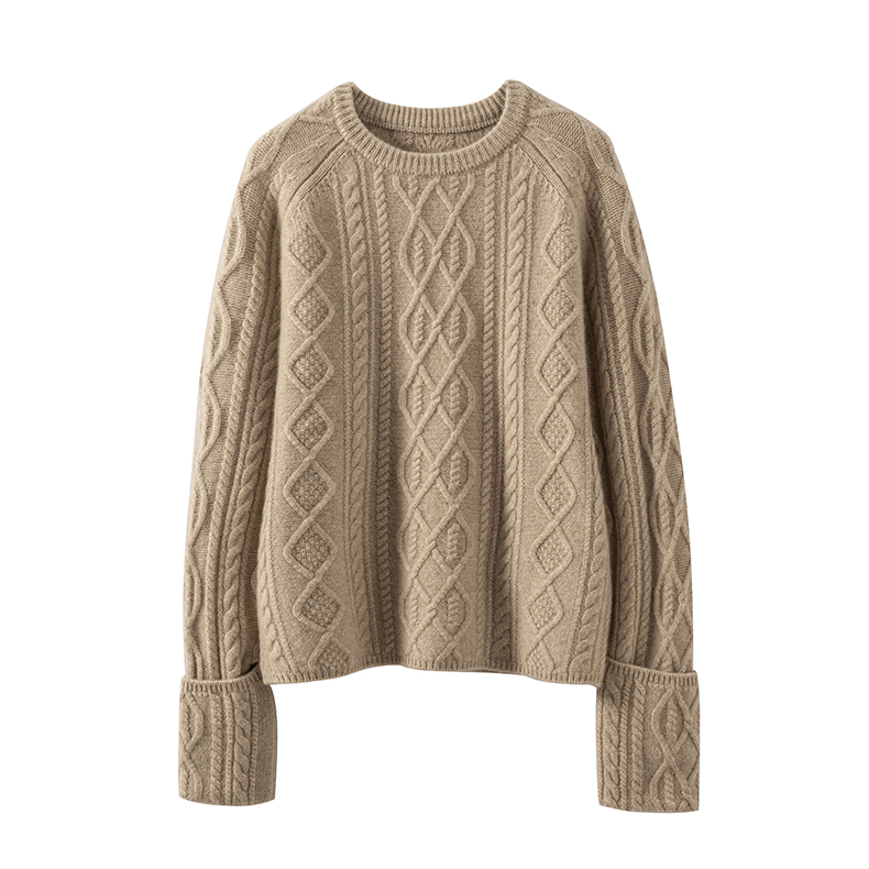 女100纯羊绒针织毛衣 卷边圆领羊绒衫 羚荌渼百搭时尚 基础打底衫