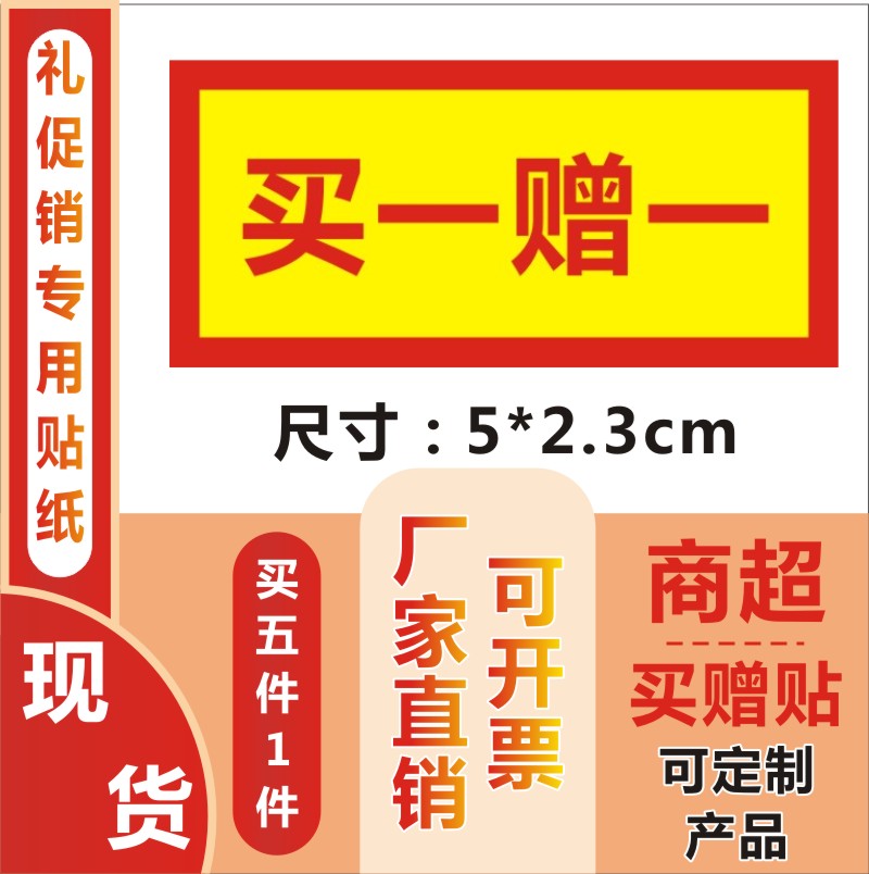 买一赠一自粘贴纸买赠买二赠一买三赠一赠品贴不干胶标签贴定制X