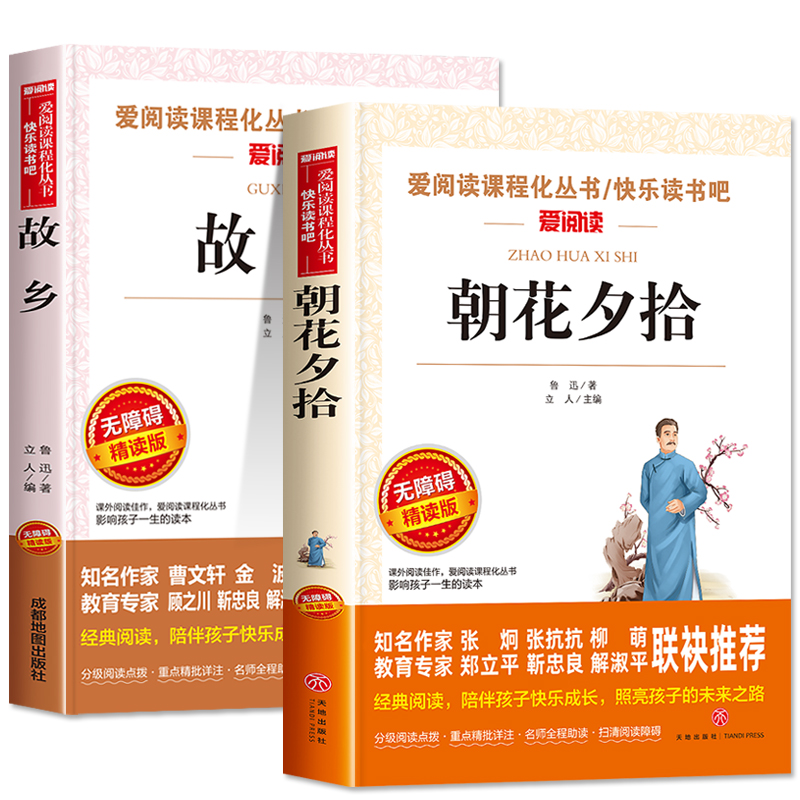 六年级七年级必读课外书老师小学6年级鲁迅全集读本小升初一小学生课外阅读书籍上册故事书推荐 全套2册 朝花夕拾故乡鲁迅原著正版