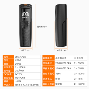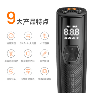 LOBOO萝卜摩托车充气宝车载充气泵便携迷你电动汽车胎压智能精准