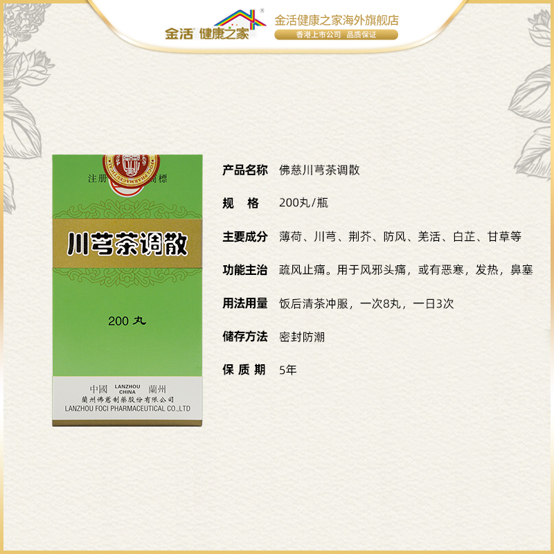 香港佛慈岷山川芎茶调散200丸疏风止痛风邪头痛发热鼻塞 临期