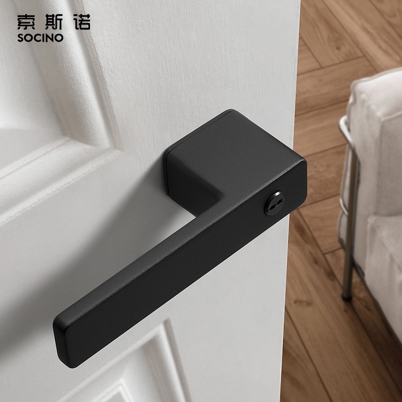 索斯诺门锁室内卧室静音房门锁北欧极简黑色磁吸门把手卫生间锁具