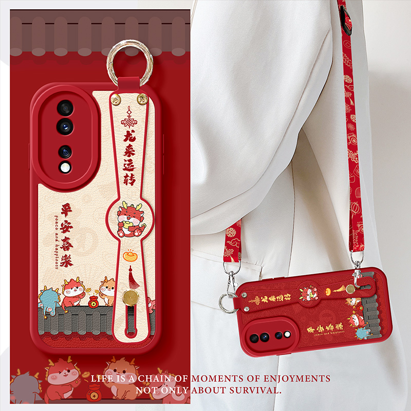 佳朗适用荣耀100手机壳浮雕honor全包80防摔90腕带50支架畅玩30M龙年40plus新款 女pro平安喜乐挂绳斜挎可背