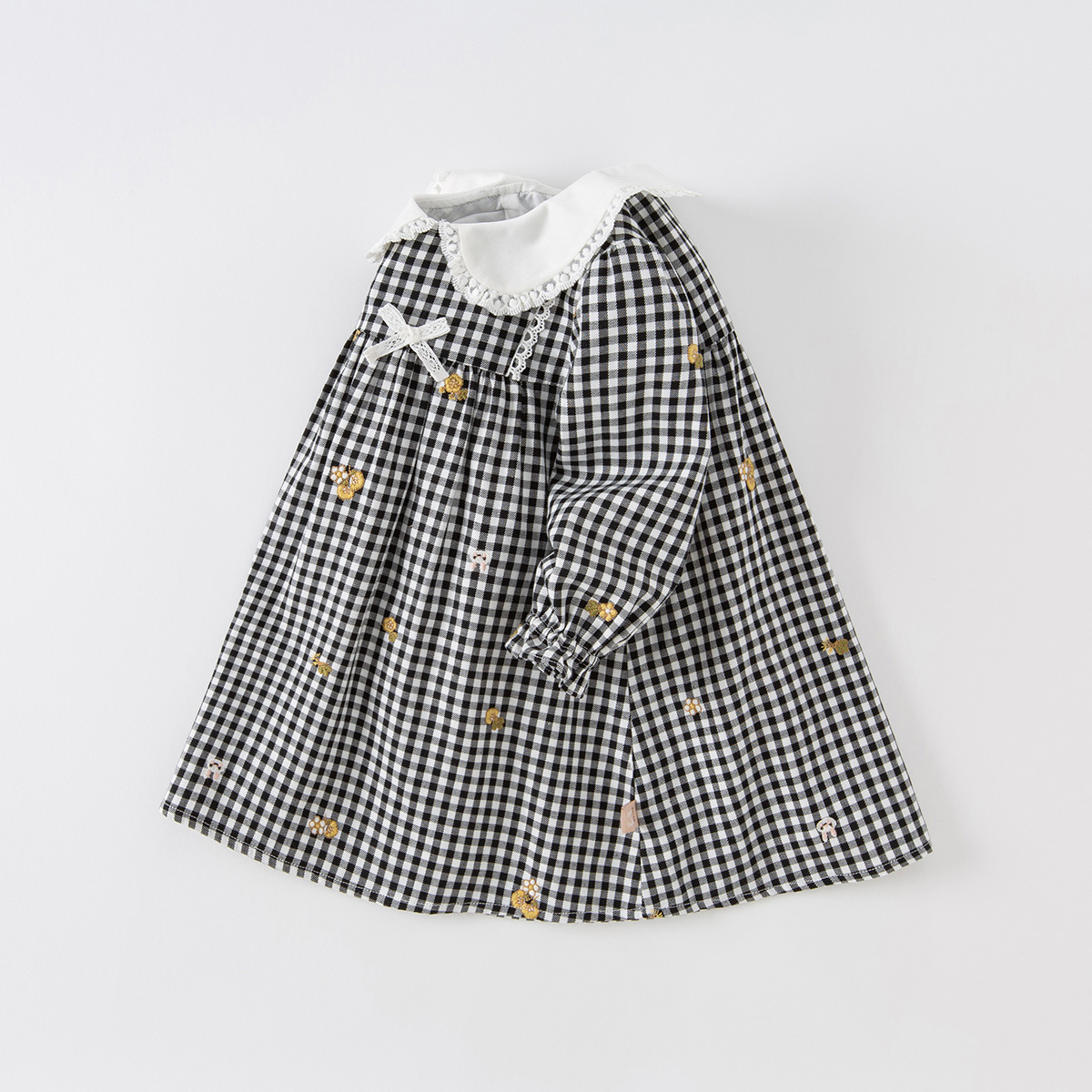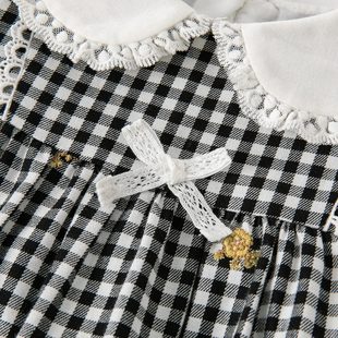 法式 小香风千金格子蓝色打底a字裙 娃娃领假两件绝美连衣裙女秋季