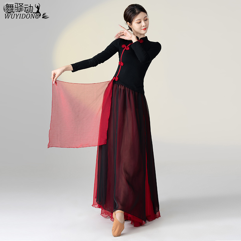 新款 女 古典舞蹈服中国风身韵跳舞专用弹力显瘦旗袍练功服演出服装