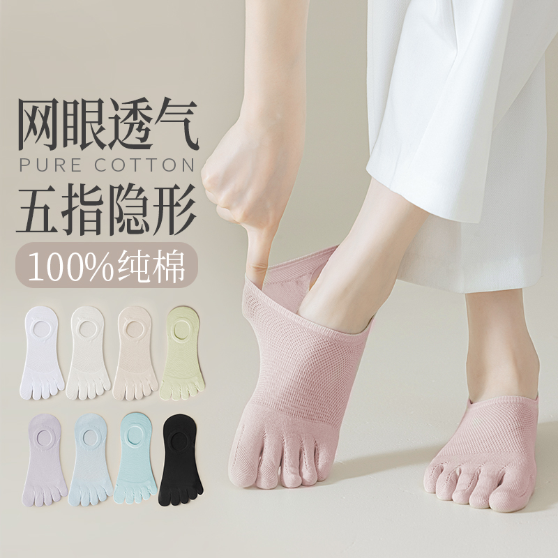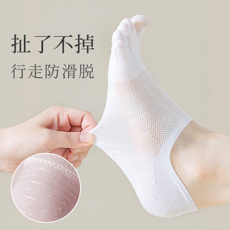 五指袜子女秋冬新款 天纯棉网眼防滑不掉跟防脚气浅口隐形分趾船袜