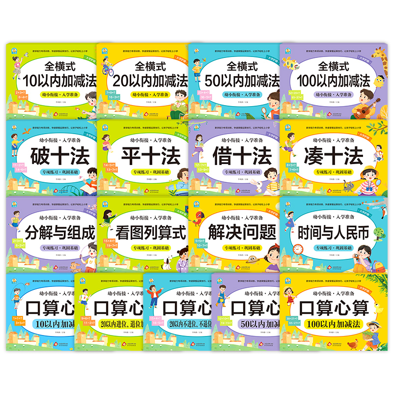 数学专项训练 100幼儿园中大班算数本全横式 口算心算幼小衔接10 20以内加减法练习册一年级口算题卡幼儿学前班十数学思维训练题50