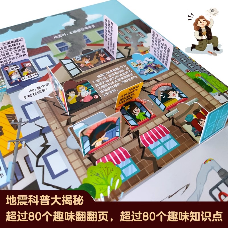 8岁小学生自然灾害科普百科全书机关绘本认知图画幼儿园早教启蒙认知故事 揭秘地震世界翻翻书揭秘系列儿童翻翻书3d立体书0