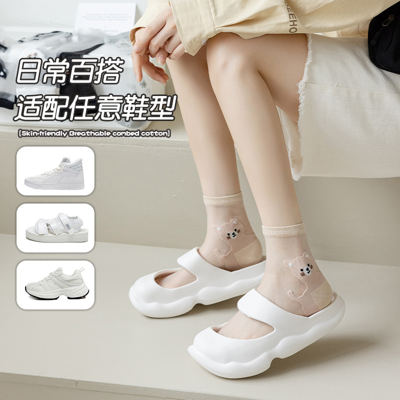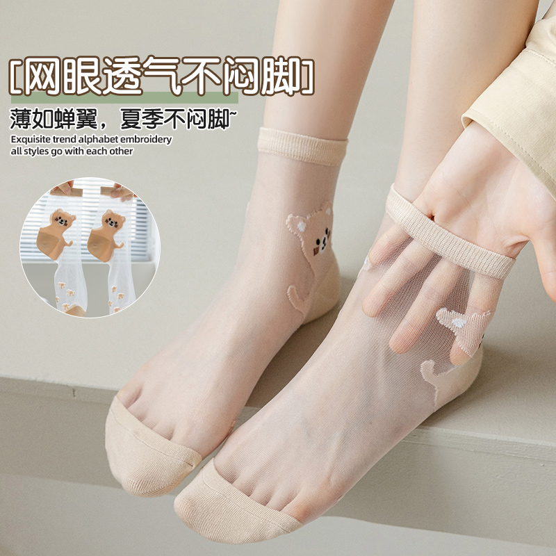 浪莎丝袜女短春秋短款 防勾袜子短丝袜 水晶丝耐磨中筒黑色肉色夏季