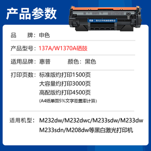 sdw碳粉盒W1370A晒鼓hp137a M233sdn x墨粉仓易加粉 M232dwc激光打印机墨盒M208dw 适用惠普M232dw硒鼓M233dw