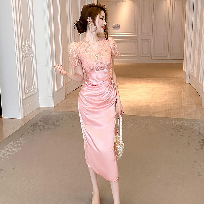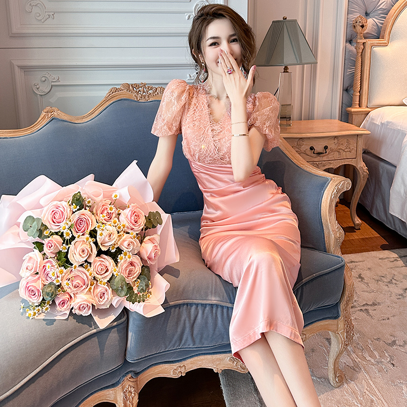 茬客粉色重工立体花朵连衣裙2025夏季 气质名媛设计感蓬蓬短裙 新款