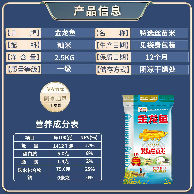 金龙鱼大米特选丝苗米2.5kg优质丝苗米5KG10斤装 南方长粒香米20斤