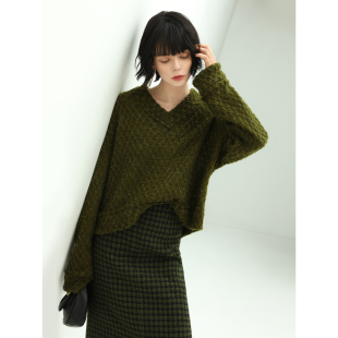 COCOBELLA 细闪千鸟格含羊毛半身裙秋冬毛呢裙HS87 苔藓绿