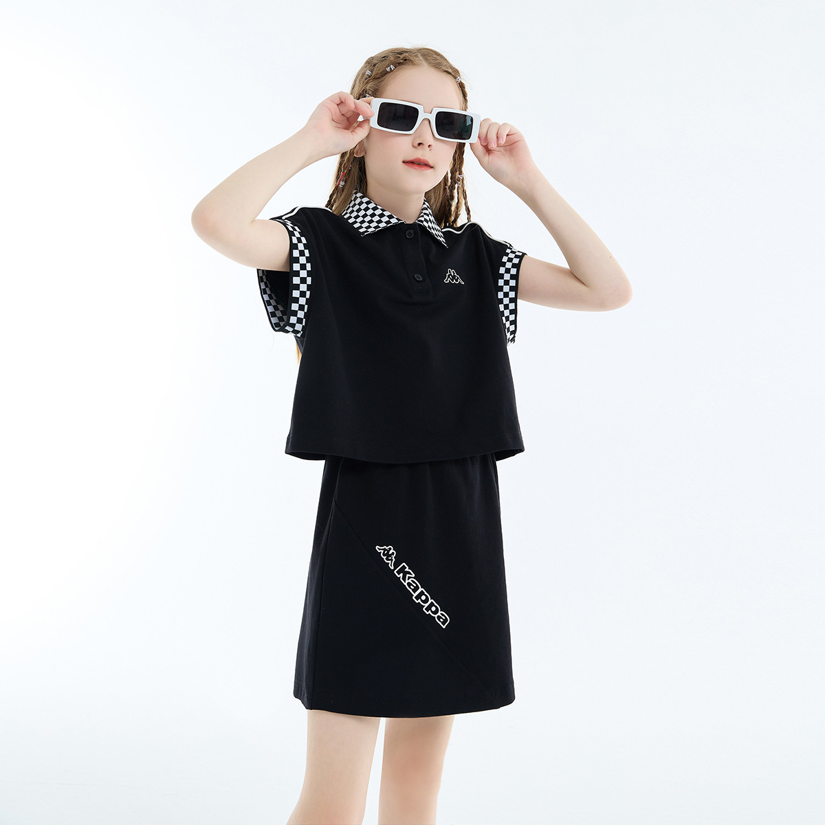 新款 2025夏季 童装 女孩短裙短袖 纯色字母印花 kappa 套装 kids