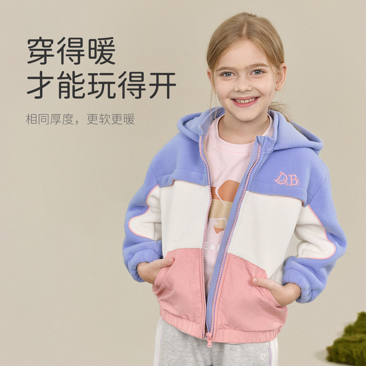 连帽上衣女宝中大童女孩 戴维贝拉女童摇粒绒外套秋装 清仓特价