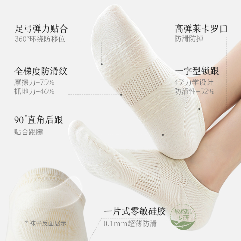 高跟鞋 袜子薄款 袜子 冰丝隐形袜棉制底防滑不掉跟浅口鞋 船袜女夏季