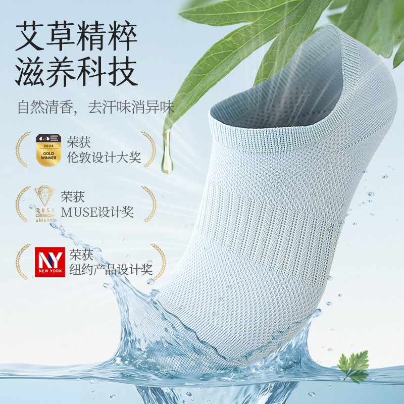 船袜 纯棉夏天短袜男士 雅鹿袜子男中筒防臭吸汗抗菌夏季 长袜薄款