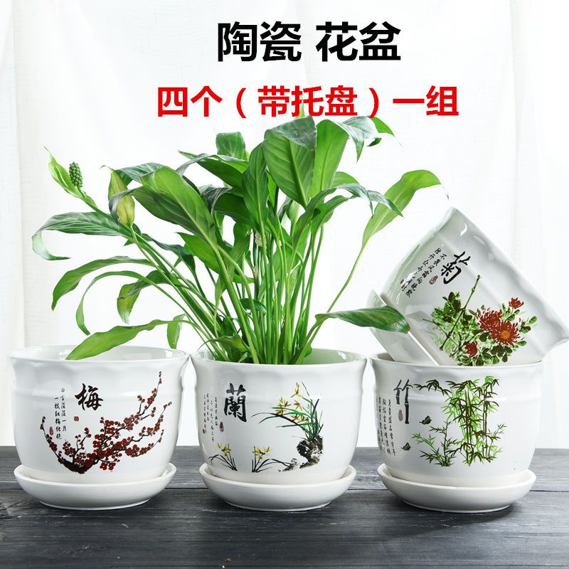 花盆陶瓷白色轻奢简约特价 清仓大号带托盘家用绿萝吊兰多肉小花盆