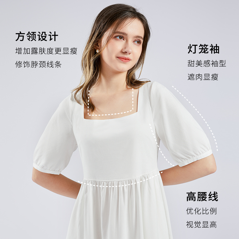 气球裙LILY2025法式 腰带白色蓬蓬裙连衣裙女 垂感气质插肩灯笼袖