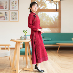 如意风奥黛新中式 改良旗袍女收腰显瘦日常中国风高端连衣裙23R159