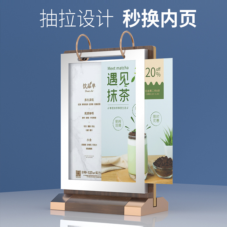 翻页广告牌酒水牌桌面立牌台卡台牌广告牌餐牌菜谱多页展示牌亚克力宣传展示牌架餐厅咖啡火锅店菜单活页台牌