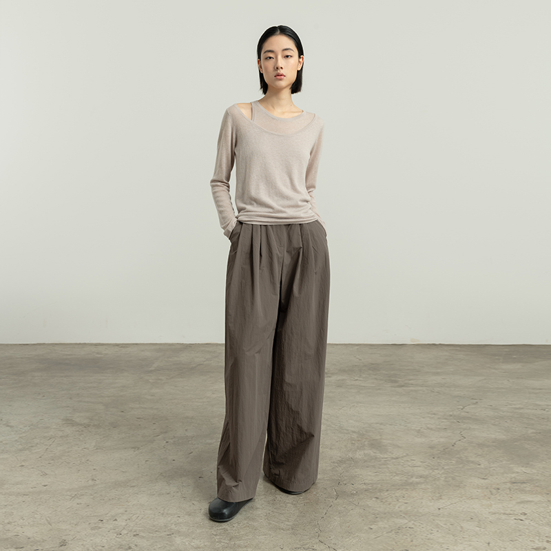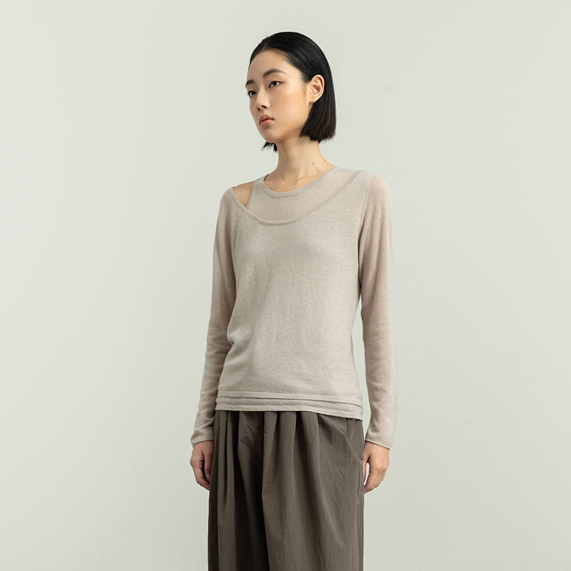 322WORKHOUSE羊毛假两件套头衫 女士2025春秋设计感针织毛衣A783
