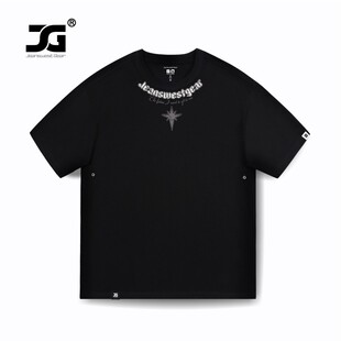 t恤男女同款 字母印花落肩短袖 重磅 品牌美式 JG&JEANSWESTGEAR大码
