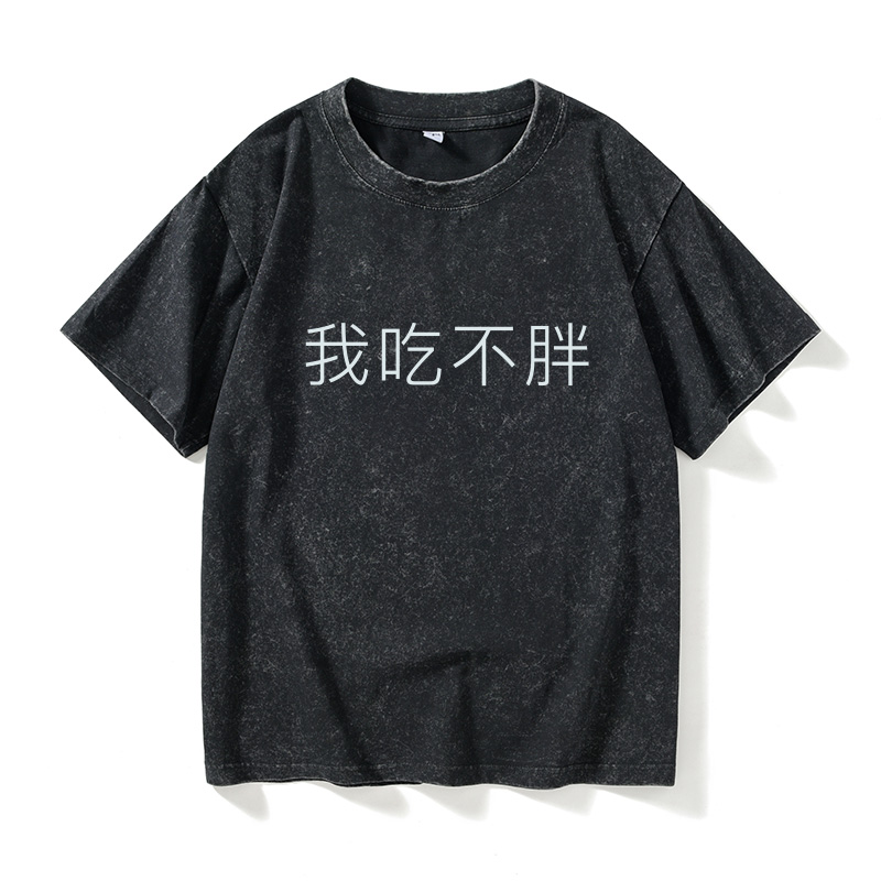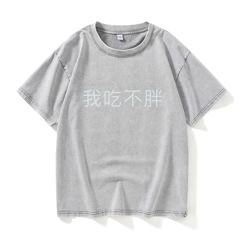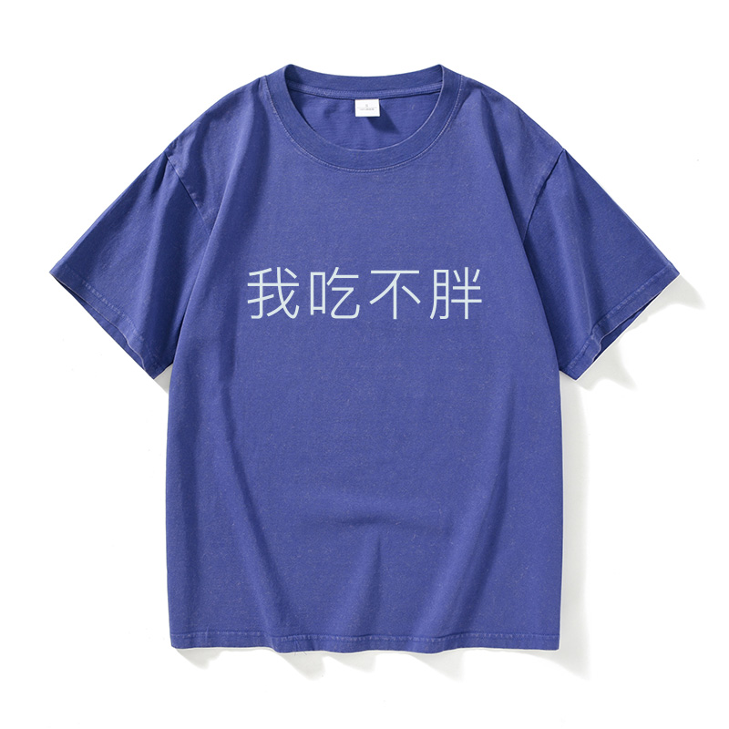 宽松夏季 我吃不胖 衣服女男圆领大码 个性 情侣 文字汉字中文T恤短袖