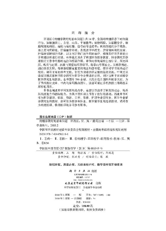 基本问题 社书籍KX 科学出版 每章内容既独立 书 病理学研究 又循序渐进 双语版 第2二版 概念和思考题 陈莉 理论联系实际 编