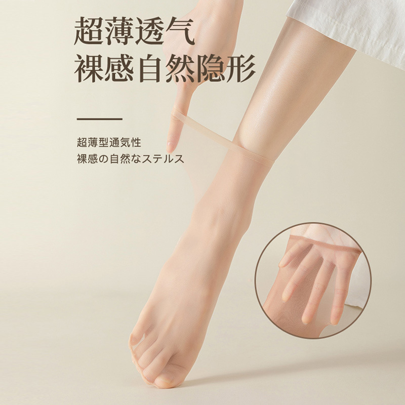 浪莎丝袜女短夏季 防勾丝防滑中筒超薄透明隐形无痕短筒水晶袜 薄款