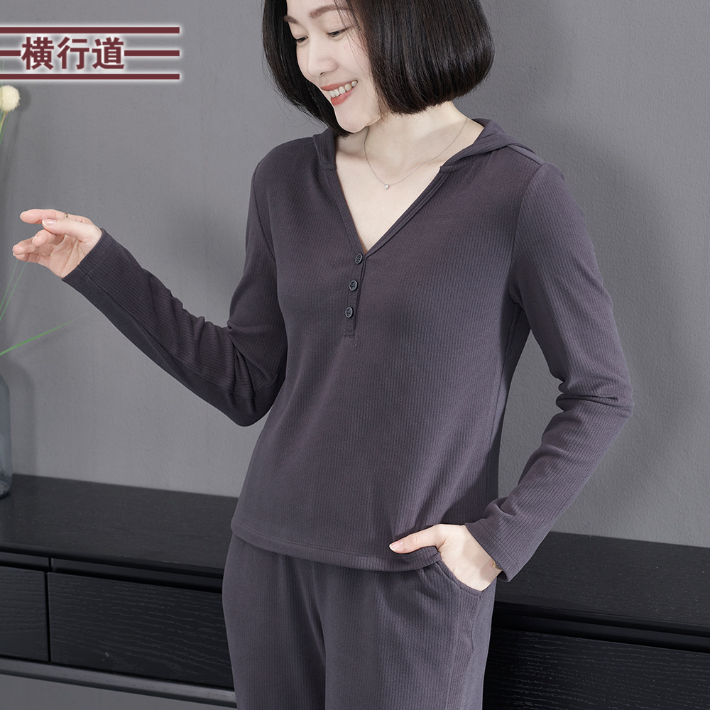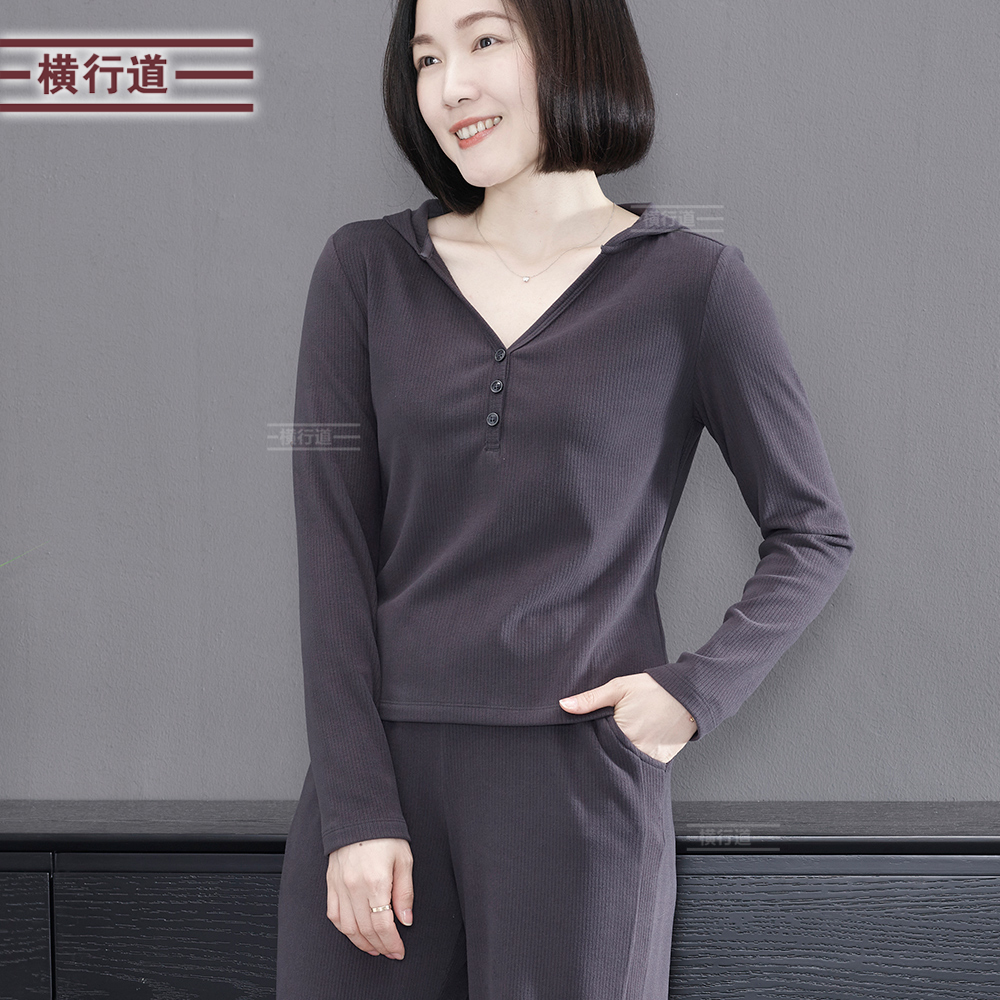 秋季 上衣外穿大码 简约淑女连帽短款 纯色T恤女装 纽扣长袖 2025新款