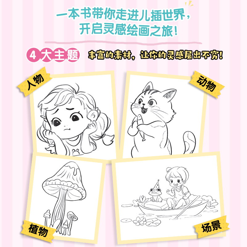 铅笔素材创意插画灵感集 儿童控笔训练临摹练习册教程 儿童简笔画图册 儿童插画手绘素材1000例 萌趣绘