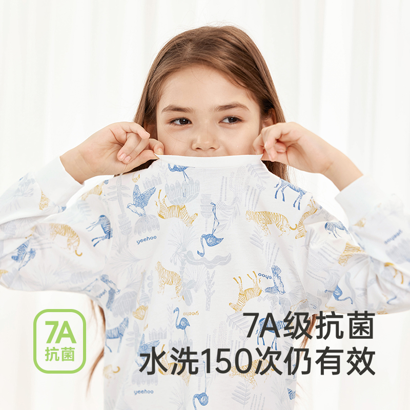 宝宝秋衣秋裤 中大童纯棉抗菌睡衣2025新款 秋季 英氏儿童家居服套装