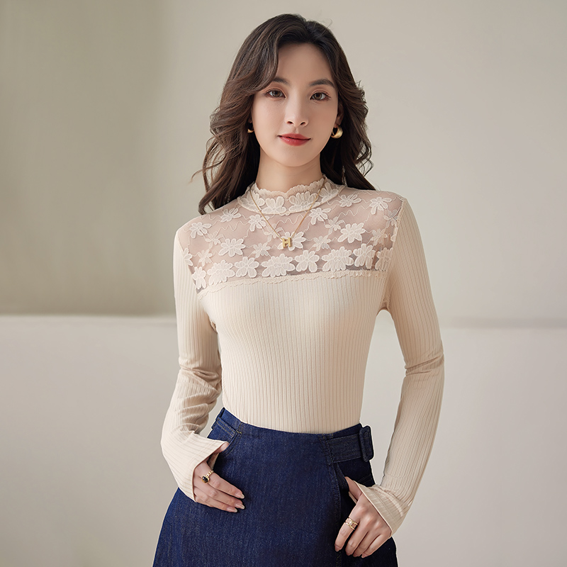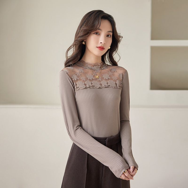 气质洋气内搭上衣薄 秋冬妈妈高领小衫 清仓五公主蕾丝打底衫 女新款