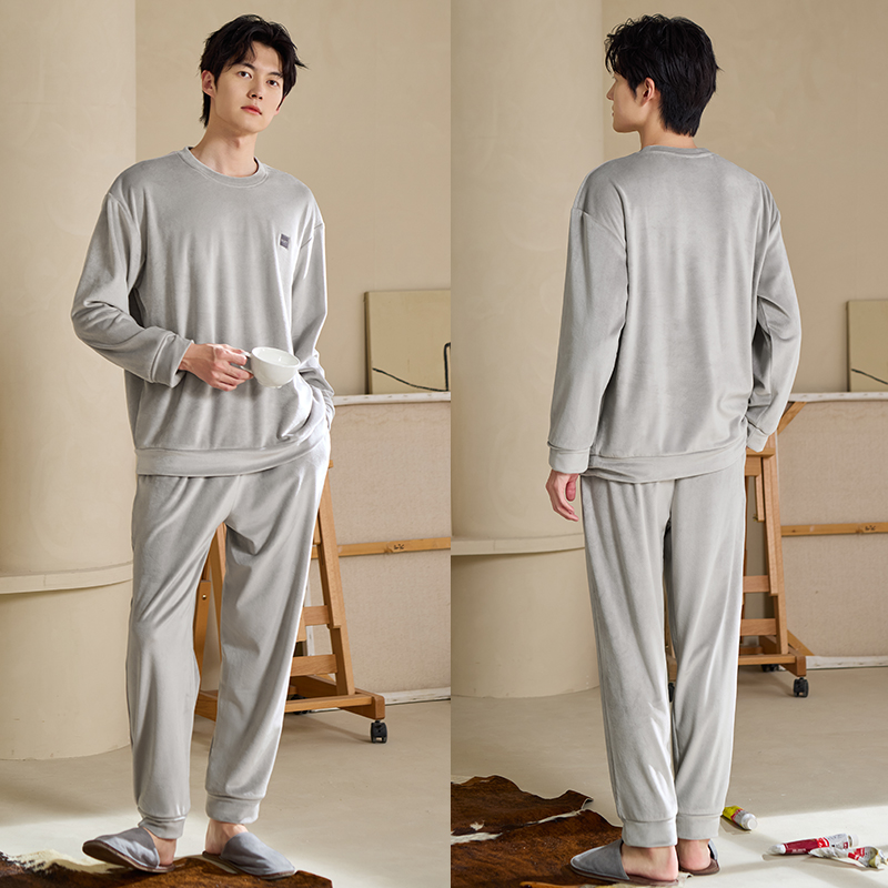 加绒加厚保暖圆领套头海岛绒珊瑚绒家居服套装 轩靓睡衣男士 秋冬季