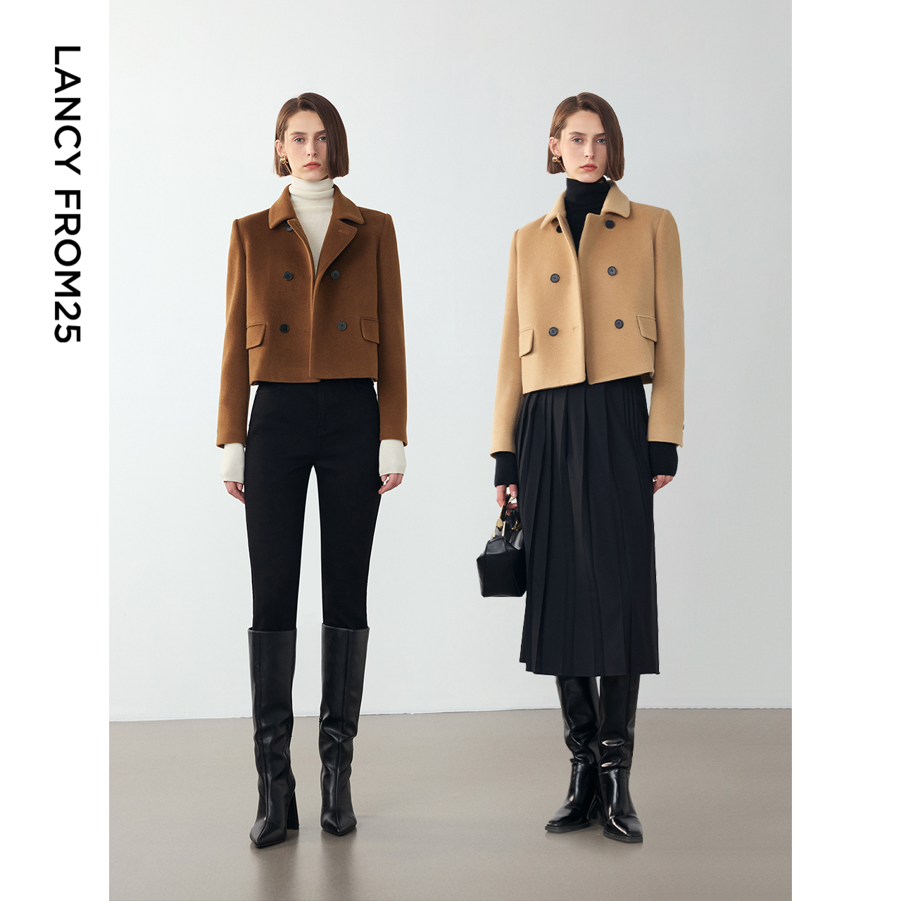 圆领大衣女小个子气质毛呢外套 高端羊毛双面呢短款 2025年春季 新款